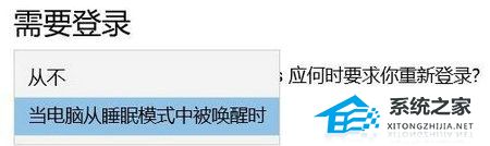 6. 最后选择下拉中的“从不”之后电脑黑屏就不需要输入密码了。