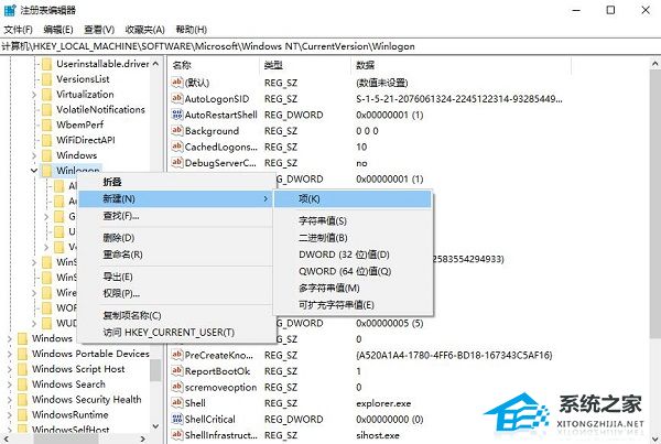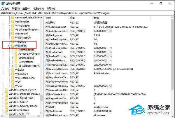 2. 进入到注册表编辑器后,依次点击左侧栏中的“HKEY_LOCAL_MACHINESOFTWAREMicrosoftWindowsNTCurrentVersionWinlogon”。