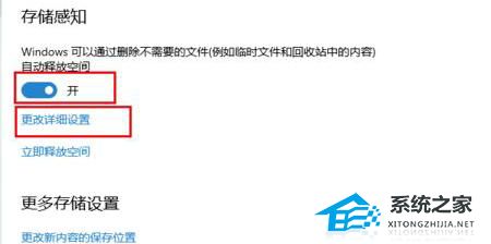 4. 打开“存储感知”可以自动清理,点击“更改详情”。