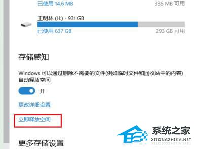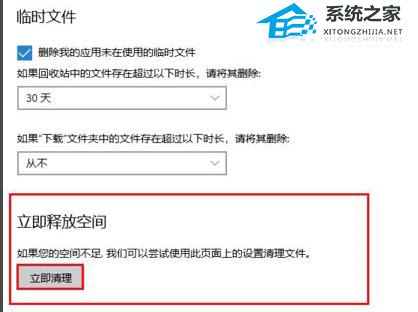6. 返回上一层,点击“立即释放空间”对C盘进行清理。