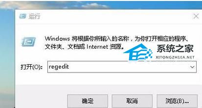 2. 在弹出的运行窗口中,输入“regedit”回车打开。
