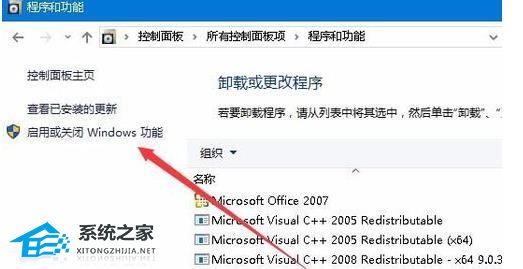 7. 然后点击左侧栏中的“启用或关闭Windows功能”选项。