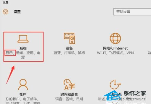 2. 在设置选项里找到【系统】功能选项,该选项下有【显示】功能按钮。