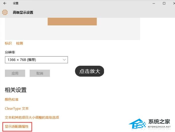 4. 进入高级显示设置界面,找到【显示适配器属性】功能选项进入。