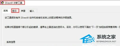 2. 在DirectX诊断工具界面里,点击上方菜单栏里的【显示】菜单。