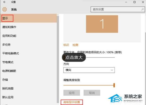 3. 选择【显示】,找到【高级显示设置】功能选项打开。