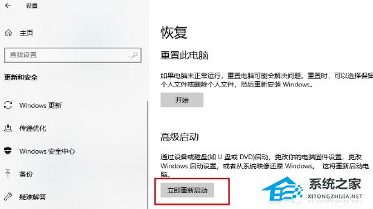4. 在高级启动下方点击立即重启即可进入高级选项。