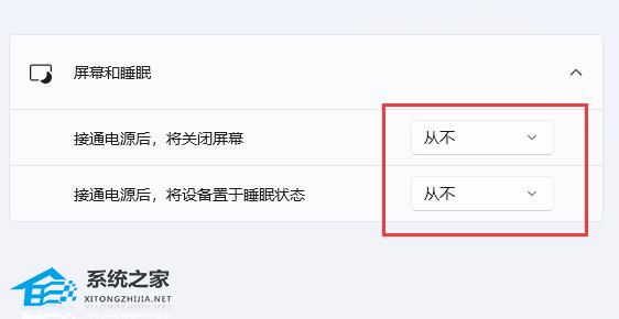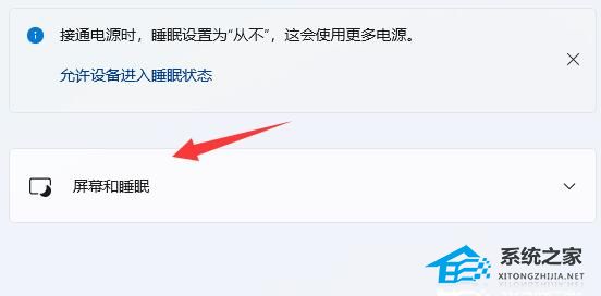 第三步:展开“屏幕和睡眠”选项。