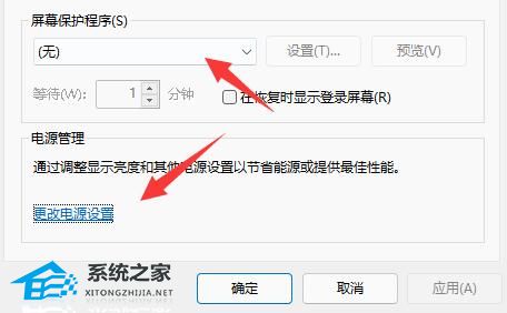 4. 确保上方屏幕保护程序为“无”,再点击“更改电源设置”。