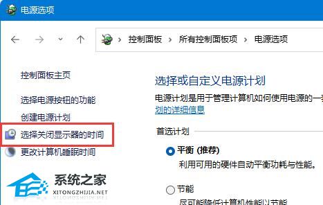 5. 再点击左边栏的“选择关闭显示器的时间”。
