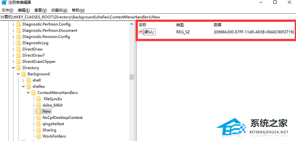 2. 进入到注册表编辑器后,依次点击左侧栏中的“HKEY_CLASES_ROOTDirectoryBackgroundshellexcontextMenundrsNew”。