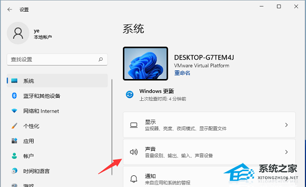 2. 进入到新的窗口界面后,点击右侧中的“声音”选项。