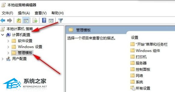 2. 进入本地组策略编辑器页面之后,打开计算机配置下的管理模板选项。