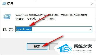 1. 按下“Win+R”打开运行窗口,输入“gpedit.msc”,点击确定。