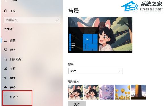 2. 在页面上弹出一个设置窗口,点击左下角的【任务栏】选项卡。