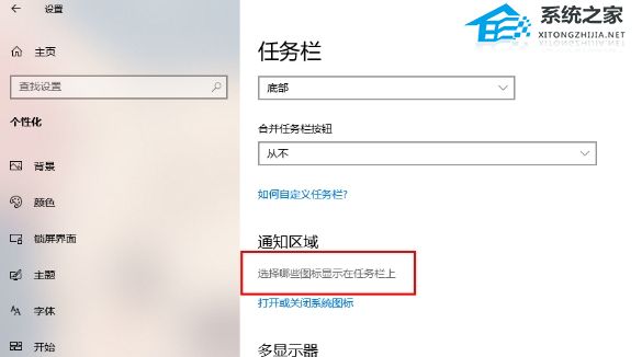 3. 在右侧页面进行鼠标滚动操作,找到【选择哪些图标显示在任务栏上】选项,点击该选项进入。