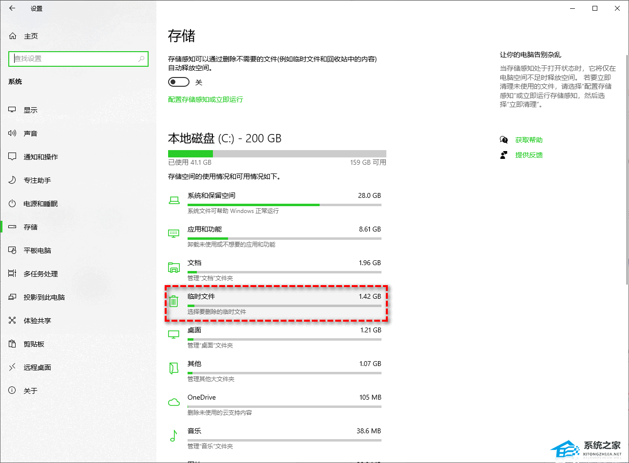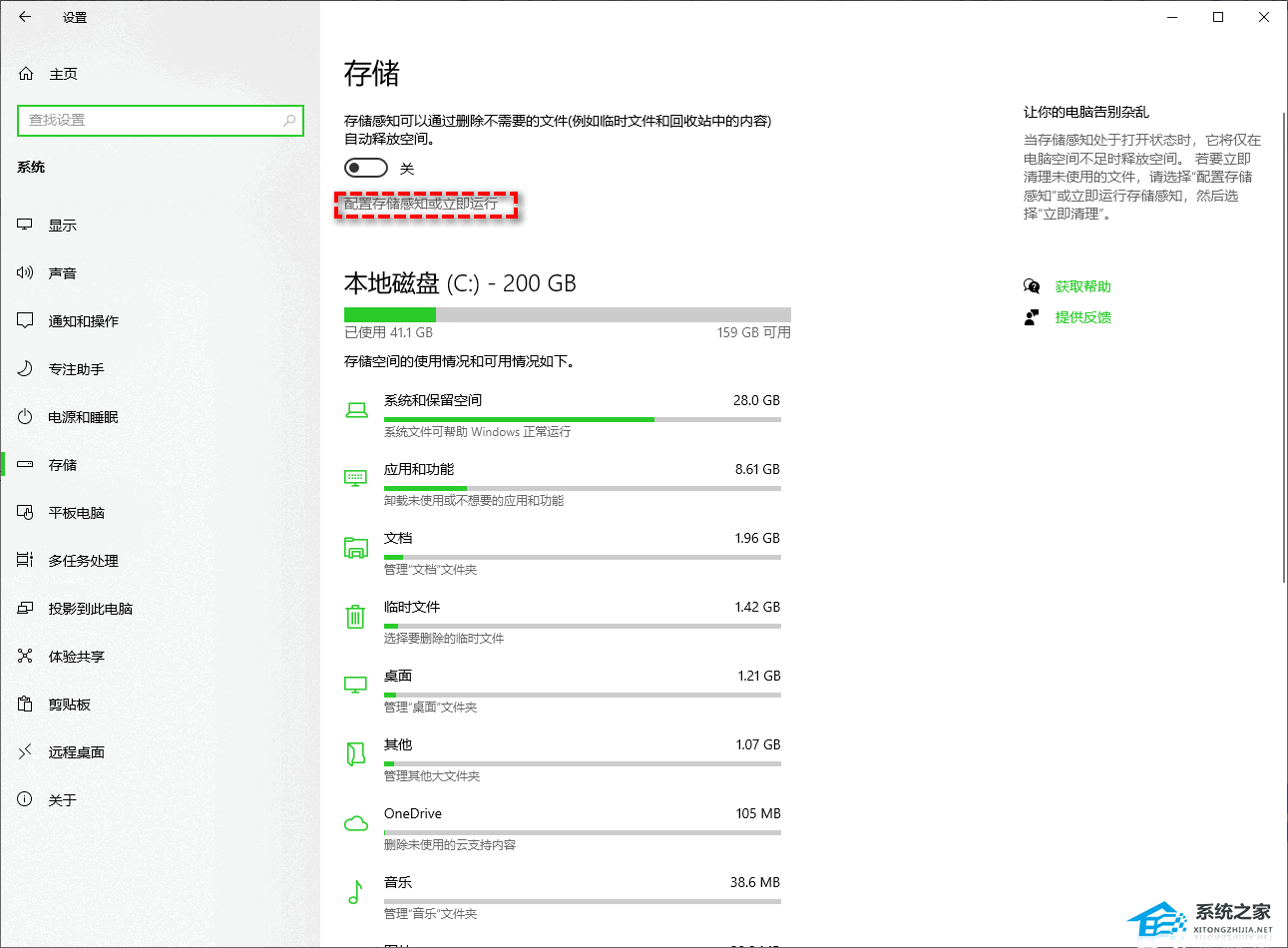 步骤1. 打开“开始”>“设置”>“系统”>“存储”。