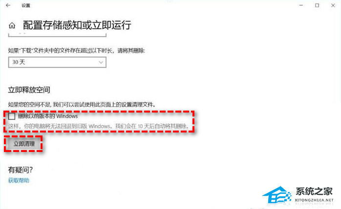 步骤3. 在新弹出的窗口中,拉到下方在“删除以前版本的Windows”前打勾,然后点击“立即清理”。