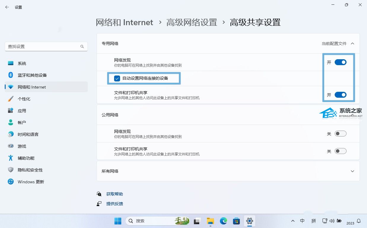 另一种打开 Windows 11 网络发现功能的方式是通过「设置」应用程序。尽管相对来说略显繁琐,但它能够实现相同的效果。在执行操作之前,不论是在家中还是工作网络中,都建议将网络类型设置为「专用网络」。