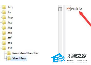 4. 之后依次点击左侧栏的“HKEY_CLASSES_ROOT.txtShellNew”,找到右侧中的“Nullfile”双击打开。