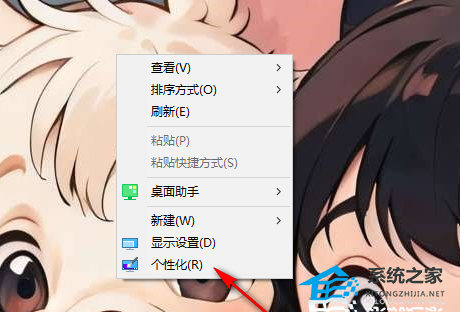 1. 右击桌面空白处,选择选项列表中的“个性化”。