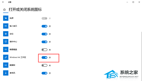 4. 然后在其中找到“Winows Ink工作区”,最后将其右侧的开关按钮打开即可。