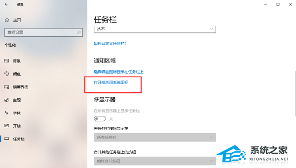 3. 随后点击右侧“通知区域”中的“打开或关闭系统图标”。
