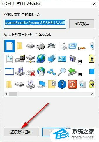 4. 进入更改图标页面之后,在该页面中直接点击“还原默认值”选项。