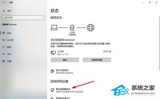 2. 进入之后,在页面上有一个【高级网络设置】功能,将该功能下方的【更改适配器选项】进行点击。