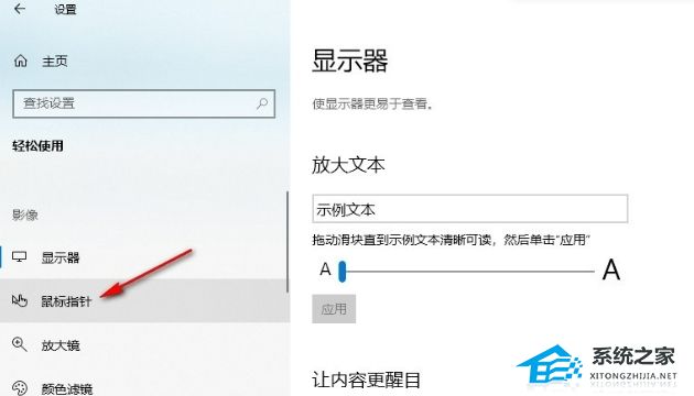 3. 进入轻松使用页面之后,在左侧列表中点击打开鼠标指针选项。