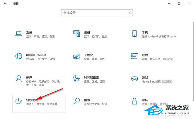 2. 进入Windows设置页面之后,在该页面中点击打开“轻松使用”选项。