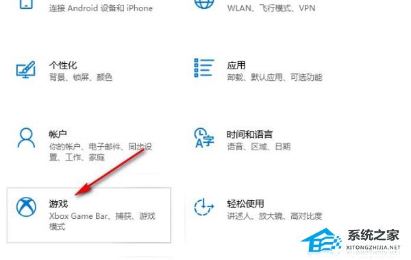 2. 进入到新界面后,点击其中的“游戏”选项。