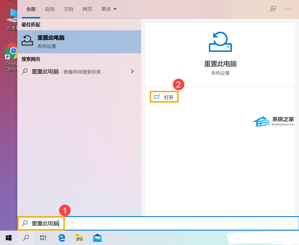 1. 按【 Win + S 】组合键,打开搜索。在搜索框中,输入【重置此电脑】,然后点击【打开】系统给出的最佳匹配重置此电脑系统设置;