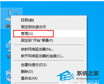 1. 桌面【右键】点击此电脑,在打开的菜单项中,选择【管理】;
