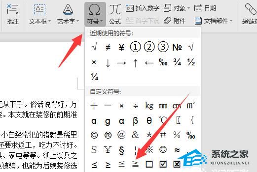 2. 在“符号”选项下,也可以找到“大于等于号”。