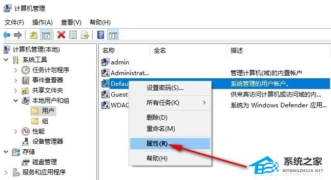 4. 在用户列表中,右键单击任意一个用户名,选择“属性”选项。