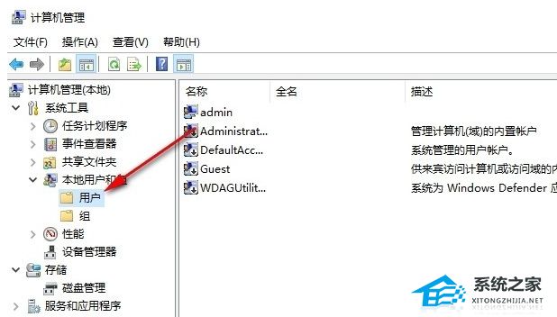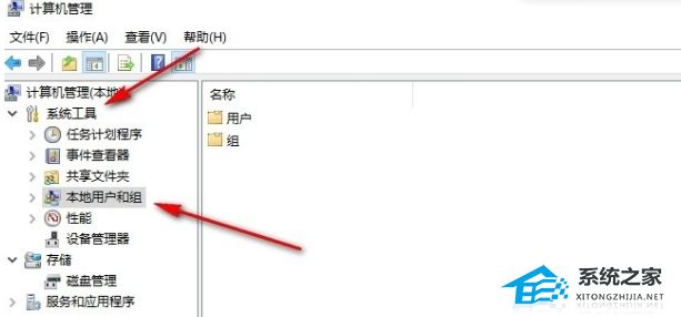 2. 进入计算机管理页面之后,打开“系统工具”下的“本地用户和组”选项。