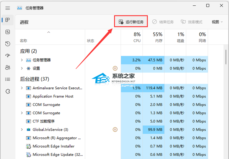 4. 如果不小心结束了Windows 资源管理器进程,也可以在任务管理器窗口,点击右上方的【运行新任务】。