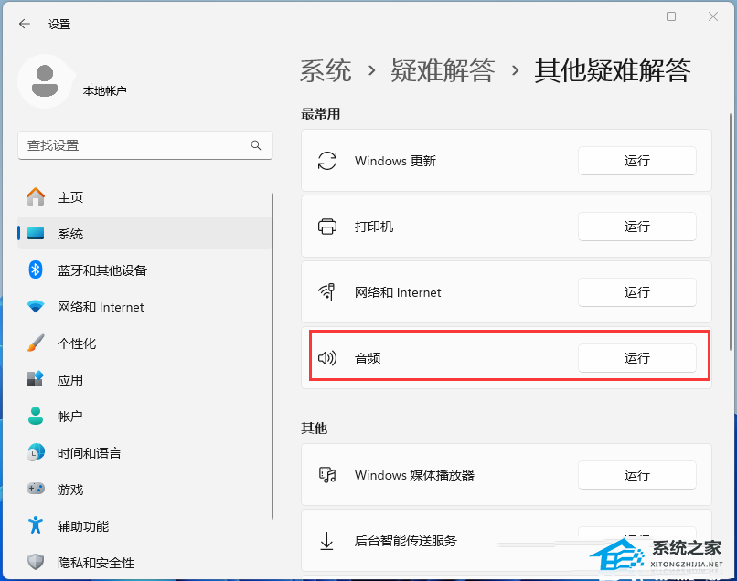 4. 最常用下,找到音频,然后点击旁边的【运行】。