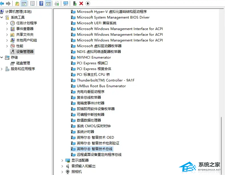 1. 右键【此电脑 - 管理 - 设备管理器 - 系统设备 - 英特尔® 智音技术总线】。