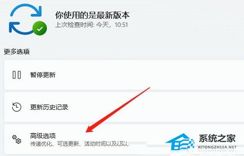 3. 接着在更多选项下,点击【高级选项(传递优化、可选更新、活动时间以及其他更新设置)】。