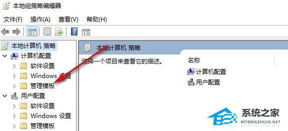 2. 打开本地组策略编辑器页面之后,在计算机配置下点击打开“管理模板”选项。