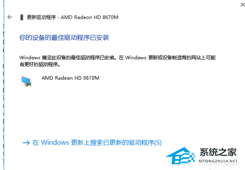 8. 搜索到最新驱动后,系统自动替代安装,更新完成后如下图所示,你还可以用驱动精灵等第三方驱动更新工具更新显卡亦可。