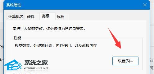 3. 在打开的窗口中,点击上方中的“高级”选项卡,接着点击“性能”下方中的“设置”。