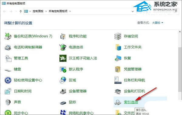 2. 进入控制面板页面之后,点击打开“索引选项”。