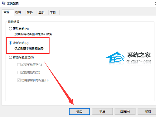 9. 打开配置窗口勾选下面的“诊断启动”再重启即可。
