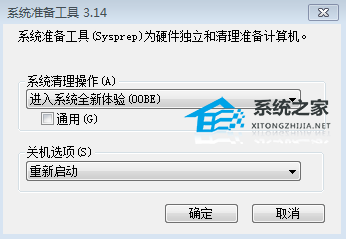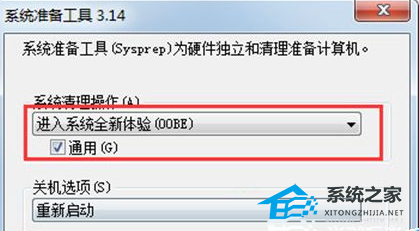5. 恢复 Sysprep 步骤。 在“系统清理操作”下打开“Sysprep”,然后选择“全新体验” (OOBE) 。