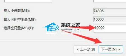 6. 最后输入想要扩展的空间量,点击下一页即可扩展C盘了。