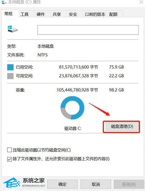 1. 打开“此电脑”,右击C盘,选择属性,点击“磁盘清理”。