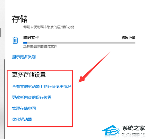 4. 也可以在“存储”中的“更多存储设置”下方进行设置,进行删除文件。